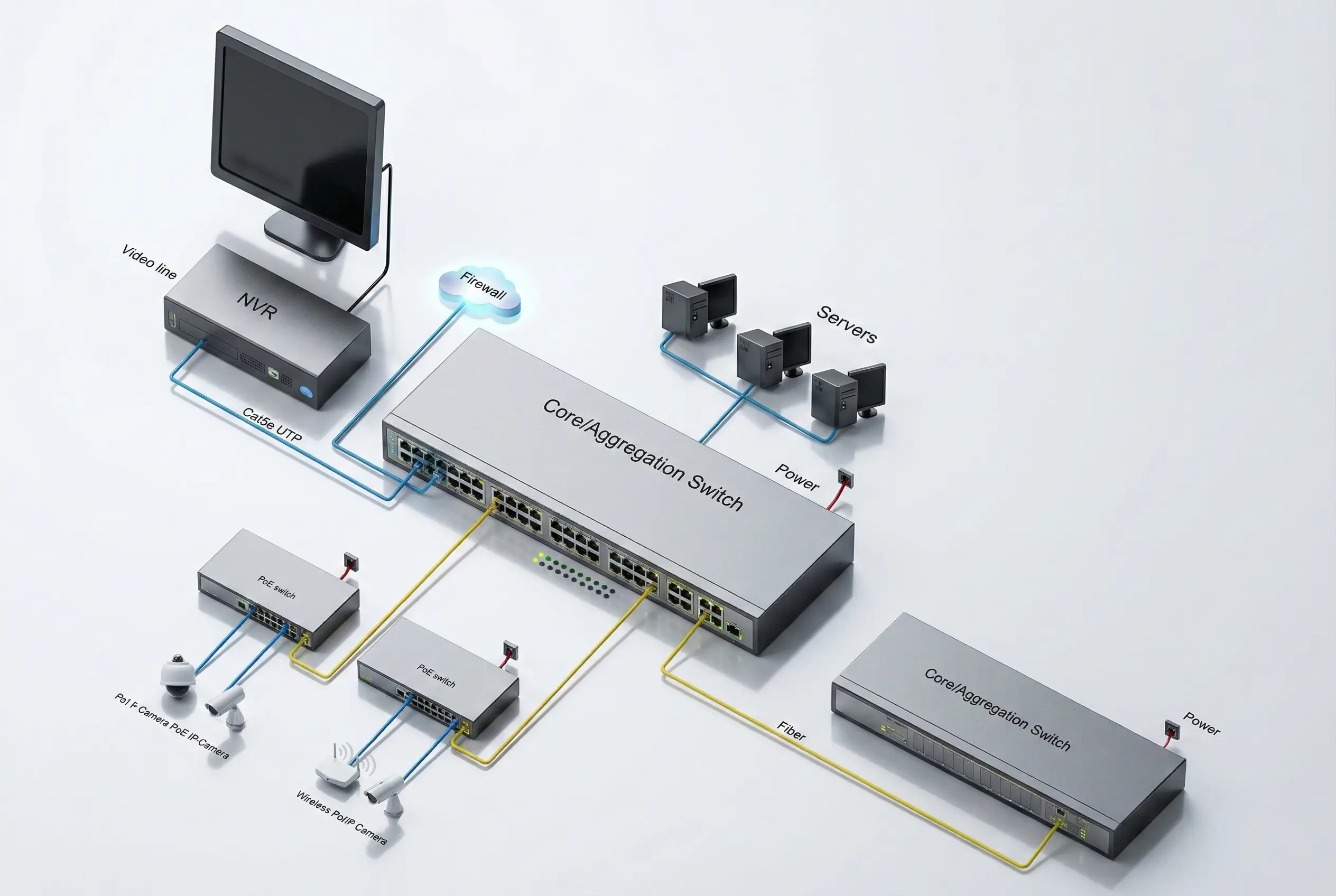 A) Unmanaged Switch (เหมาะกับระบบ Small–Medium / CCTV / SME)