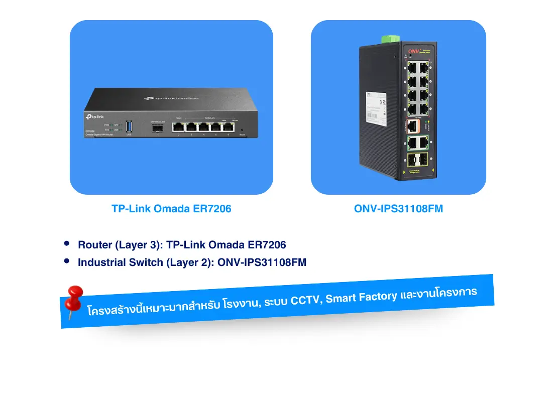 โครงสร้างนี้เหมาะมากสำหรับ โรงงาน, ระบบ CCTV, Smart Factory และงานโครงการ
