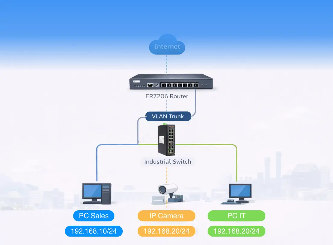 โครงสร้าง “ER7206 (L3) + ONV Industrial Switch (L2)” เป็นแนวทางที่เหมาะสมมากสำหรับงานองค์กรและงานโครงการ เพราะสามารถทำ VLAN ได้อย่างเป็นระบบ แยกแผนกชัดเจน พร้อมรองรับการขยายในอนาคต การตั้งค่าที่ถูกต้องต้องเน้น 2 จุดหลัก: