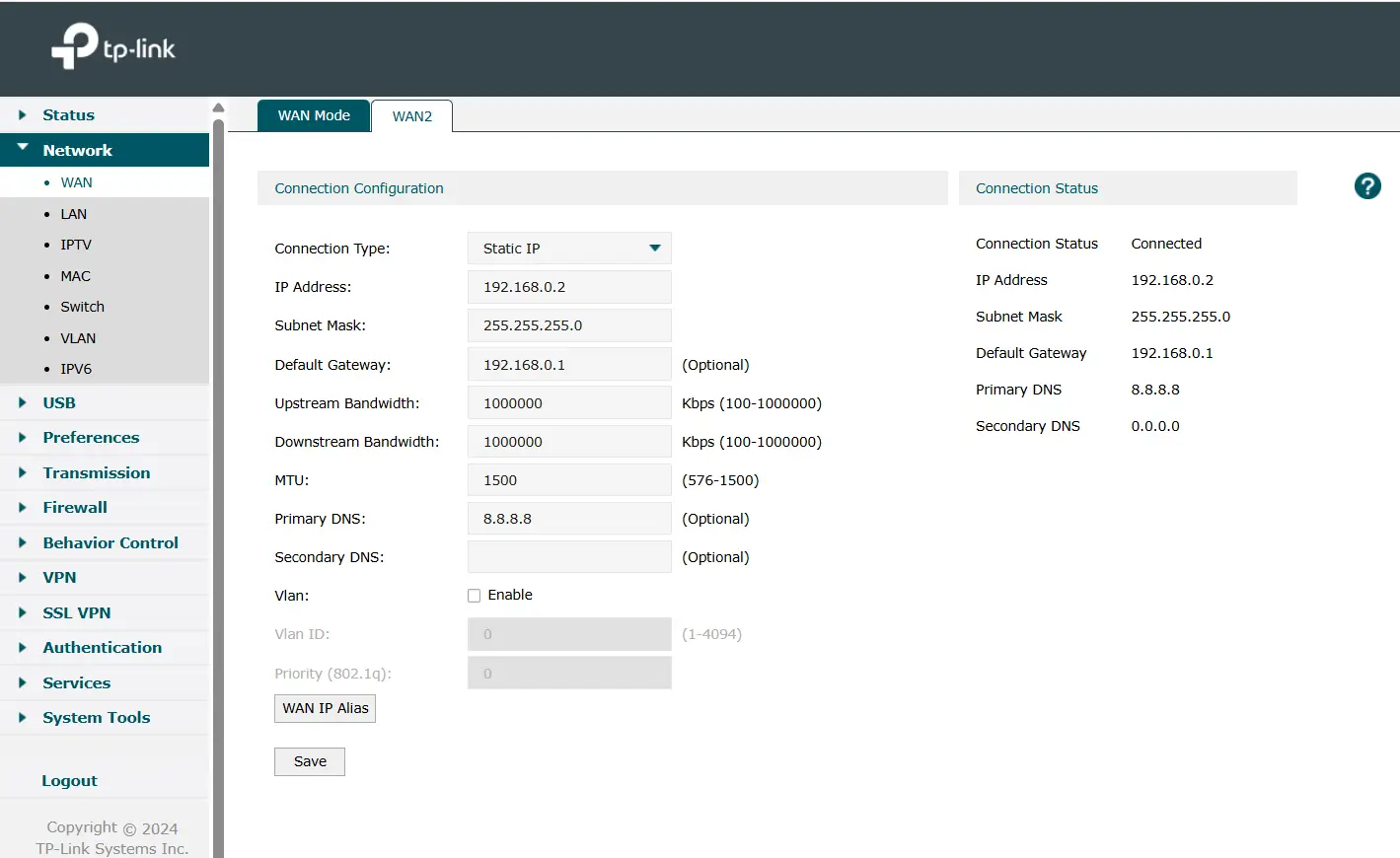 * ตรวจสอบ WAN ของ ER7206 ว่า Connected