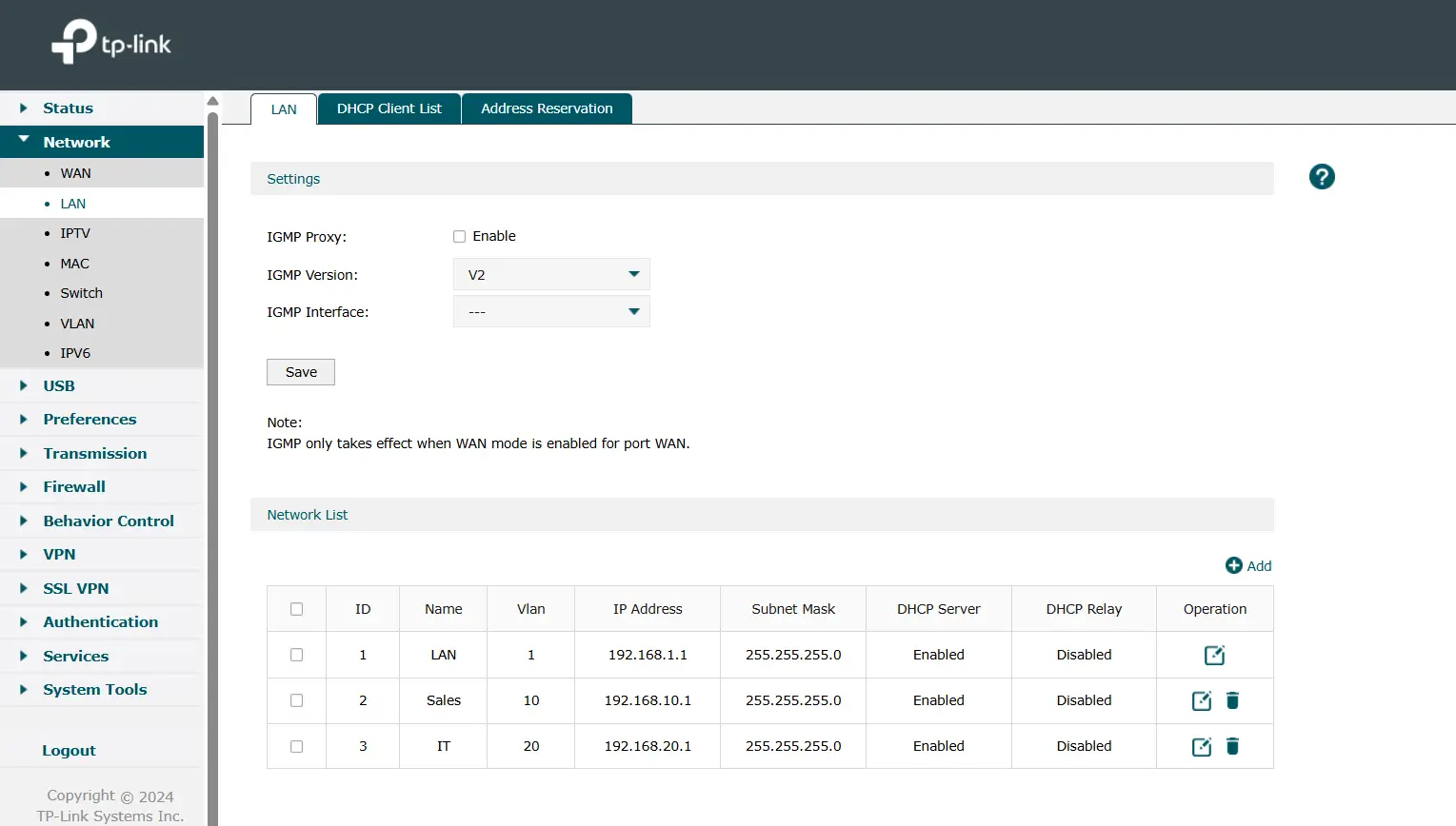 * ตรวจสอบว่า ER7206 มี LAN Network ของ VLAN10/VLAN20 พร้อม DHCP Enable