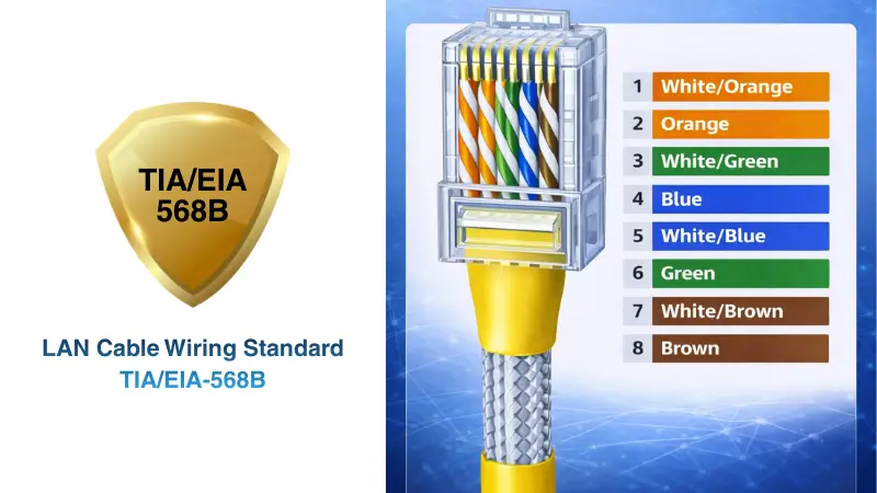 มาตรฐานการเรียงสีสาย LAN มี 2 แบบ คือ T568A และ T568B ในประเทศไทยและส่วนใหญ่ของโลกนิยมใช้ T568B