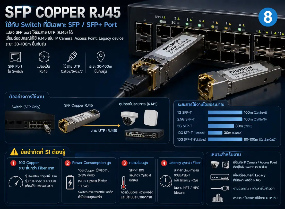 8. กลุ่ม 6: SFP Copper RJ45 — ใช้กับ Switch ที่มีเฉพาะ SFP port