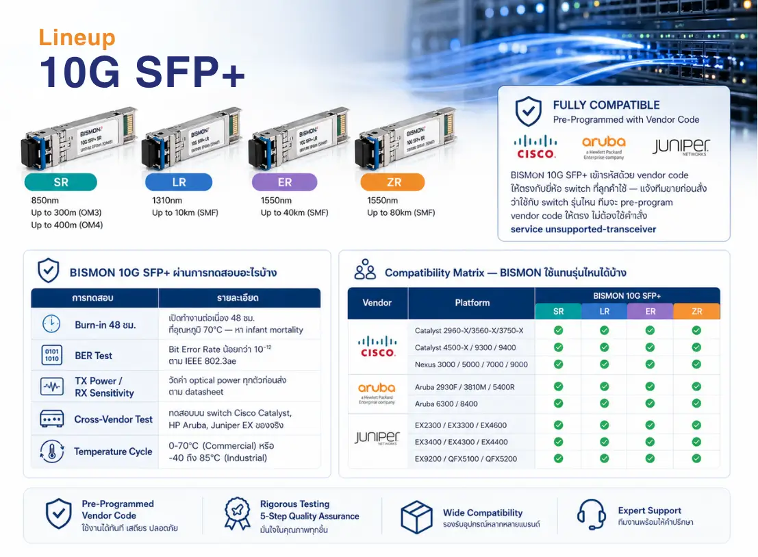10G SFP+ Compatible — รุ่นไหนใช้แทน Cisco, HP, Juniper ได้บ้าง พร้อมราคาโครงการจาก BISMON