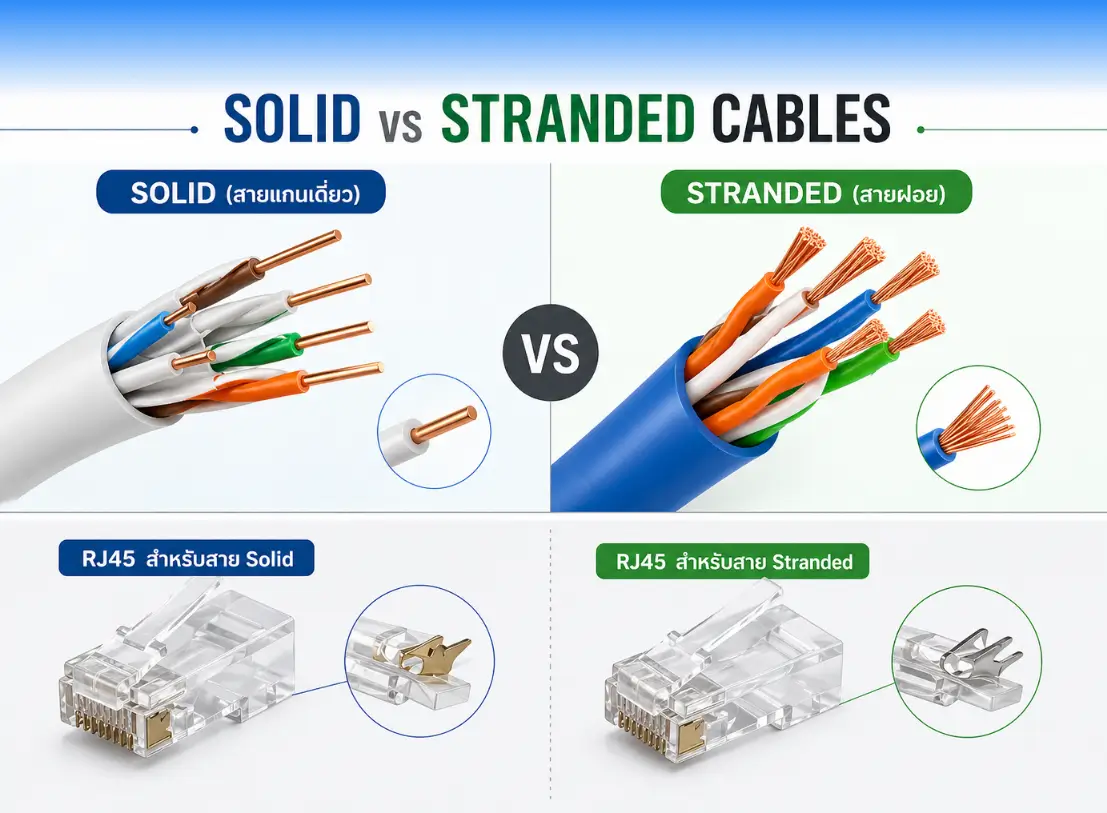 1.1 แบบตามชนิดสาย (Solid vs Stranded)