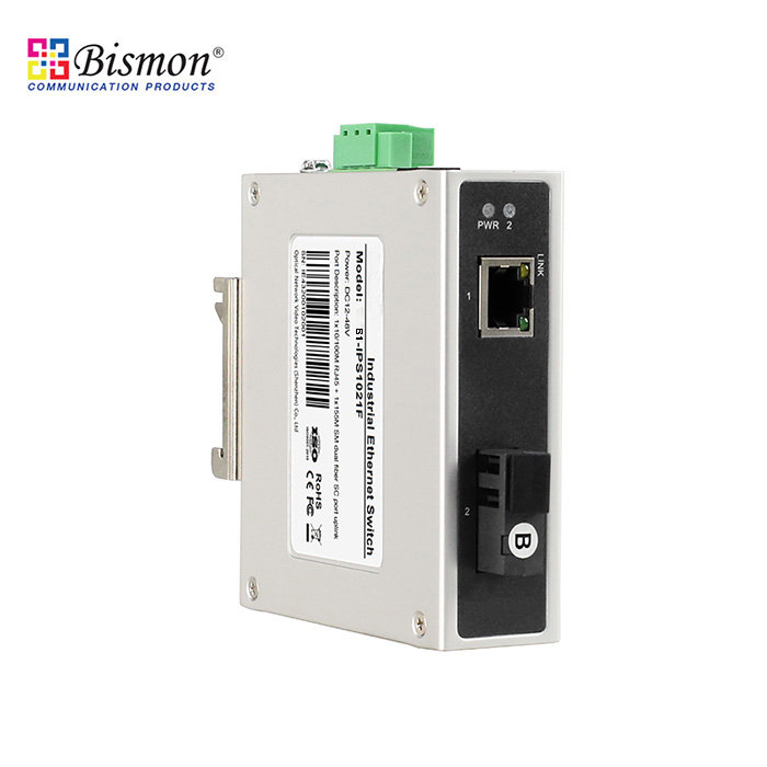 The B1-IPS1021F-B is a 10/100M industrial Ethernet fiber switch independently developed by ONV. It has 1*10/100Base-TX RJ45 port and 1*155M uplink SC fiber port (1550nm/B), and each port can support full line-rate forwarding.