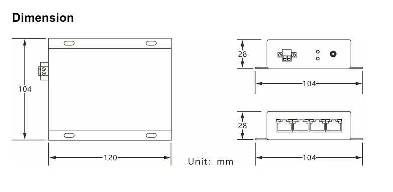 1.Four RJ45 ports — Connect up to four devices (IP cameras, access controls, intercoms, POS systems) through a single extender