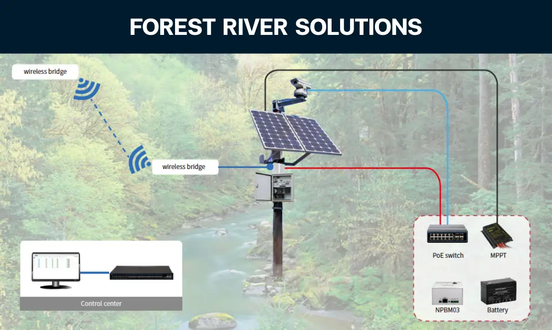 By integrating MPPT solar charging, PoE switch functions, and surge protection, it ensures stable operations even in remote areas.