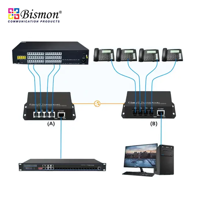 -8-Channel Telephone Fiber Converter – Supports analog telephone transmission via optical fiber