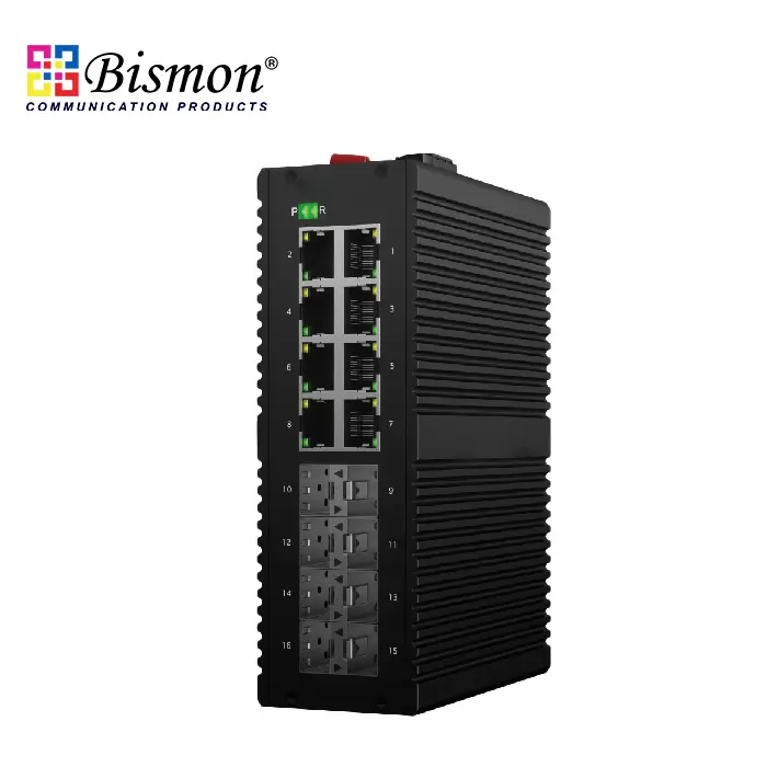 Industrial grade Switch 8 port Gigabit(10/100/1000Mbps) uplink 4x10G ,4x1000Base-X SFP slot fiber optic port รองรับ 1000Mbps ทั้ง SX, LX, ZX โดยขึ้นอยู่กับ module transceiver SFP Mini GBIC รองรับระยะได้ตั้งแต่ 10,20,40-120km. รองรับ Input Voltage: DC-12-58V, สามารถทำางานได้ที่ อุณหภูมิ -40 ถึง 75 องศาเซลเซียส, รองรับการใช้งานภายนอกอาคารได้ตามมาตรฐาน IP40 Fanless design และ Antistatic ได้ที่ 8KV-15KV, รองรับการทำางานแบบ Layer 3 switching, support DIN-Rail, Standard complies CCC, RoHs, FCC, CE, ISO, รองรับ Managed DDOS,ACL,QoS,STP/RSTP/MSTP,ERPS Ring,Dynamic routing รองรับ Dual Powe Redundancy