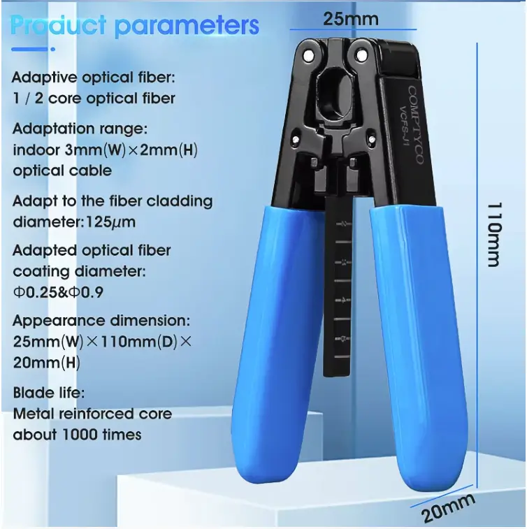 Its precision blade seat ensures clean and damage-free removal of fiber coating and cladding layers.Built with a reinforced metal core, the tool delivers high durability for long-term professional use.The integrated scale guide improves stripping accuracy and repeatability for field technicians.Compact and lightweight, it easily fits into tool bags for on-site service work. The design reduces fiber breakage and increases installation efficiency. Perfect for installers, contractors, and maintenance engineers working with indoor drop cables. A reliable and cost-effective solution for daily fiber termination and splicing operations.
