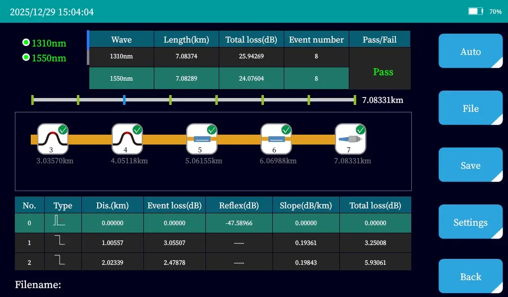 TFN offers a high-performance multi-function OTDR for fast and accurate optical fiber testing. F7 features dual-wavelength, three-wavelength (for active fiber online test), and four-wavelength options, fully supporting PON/FTTx networks.