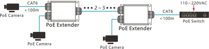 -Extends Ethernet + PoE 100m per unit, up to 500m with 4 cascaded units.