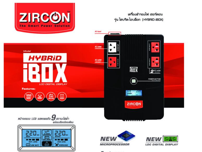 เครื่องสำรองไฟ Zircon Line Interactive UPS/ Hybrid Ibox/ 1000VA/550W/ Digital Display, Hot Swapp. (Tower type)